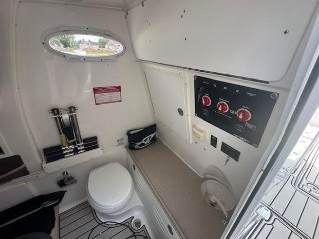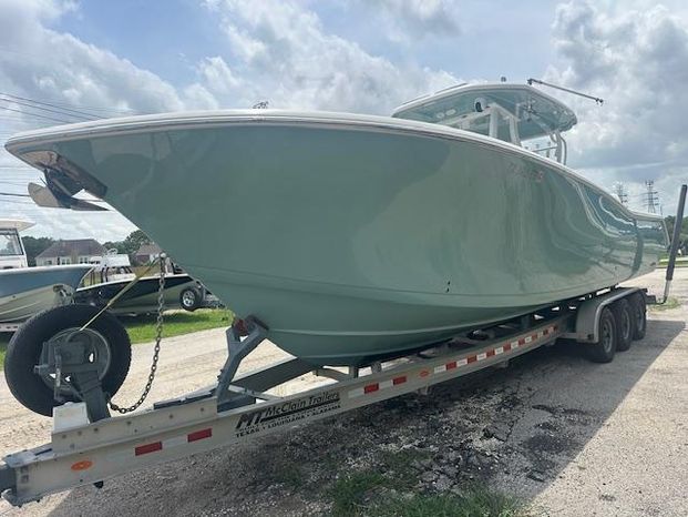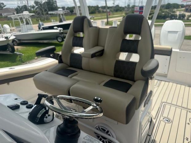 The 320 CC is filled with luxury from the yacht style helm station, backlit aluminum carbon fiber dash panel, wrap around bow seating with flip-out backrests, and so much more.