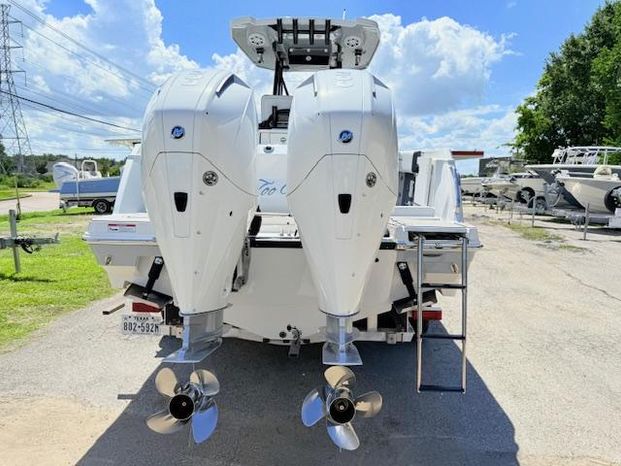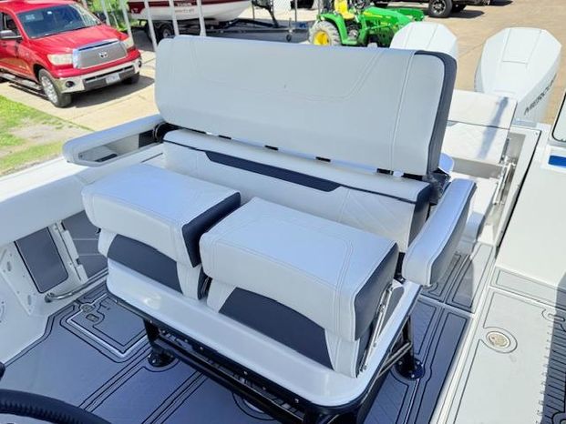 No matter what your destination is, the 252CC will take you there in style and comfort. Designed for everyday performance and fishability, the 252CC’s unique hull design offers a smooth, dry, top performing ride. The 252CC is equipped with a fiberglass hardtop & leaning post with a command center featuring a custom-designed helm seat with flip-up bolster, high protective windscreen, gunnel and hardtop mounted rod holders, baitwell and in-floor macerated fish-boxes with pump-outs, making the 252CC perfect for handling your big offshore fishing adventures. Standard features and amenities such as u-shaped bow seating, fold-away transom seating, and a spacious head compartment help to provide everything you need for the whole family to enjoy their time out on the water.