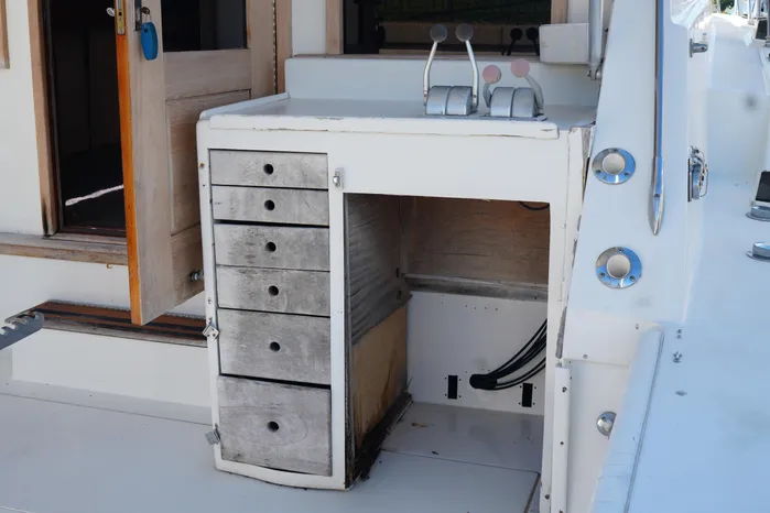 Introducing the stunning 1977 Bertram 46.6, a classic convertible boat that combines timeless design with robust performance. With an overall length of 46.4 feet, this vessel is perfect for both leisurely cruising and adventurous outings. The hull is crafted from durable fiberglass, ensuring longevity and resilience on the water. Powered by twin Detroit Diesel 8V92 engines, each delivering an impressive 435 horsepower, the Miss B Havin promises exhilarating speed and reliability. With only 3,217 and 3,205 hours of use, these engines are ready for many more journeys. Accommodations include two well-appointed cabins and two heads, providing ample space for relaxation and comfort. The thoughtful design and features make this boat an ideal choice for those seeking both style and functionality. Experience the joy of boating with the Miss B Havin, where every detail is crafted for an unforgettable experience on the water.