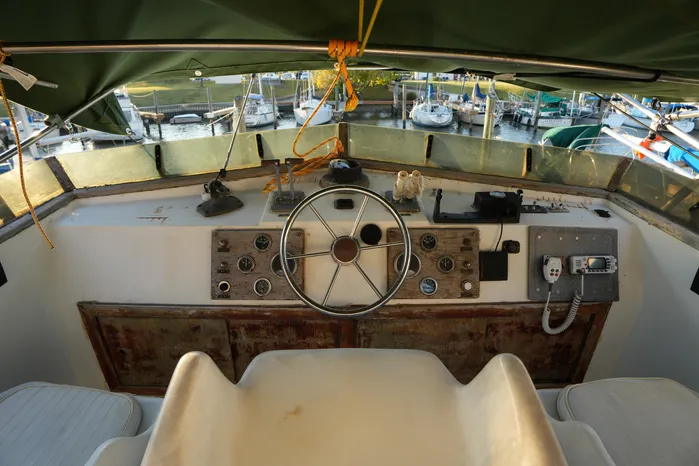 - Wheel, throttles, gear shifters, and Ritchie Powerdamp compass