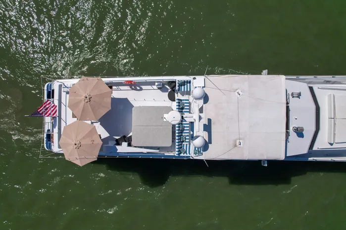 The fully covered aft deck offers a comfortable and spacious place to enjoy “al fresco” dining and/or viewing while cruising.