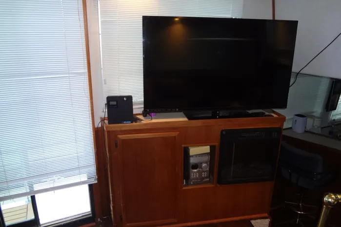 Cabin electronics: Flat-screen TVs, VHF, depthsounder, log-speedometer