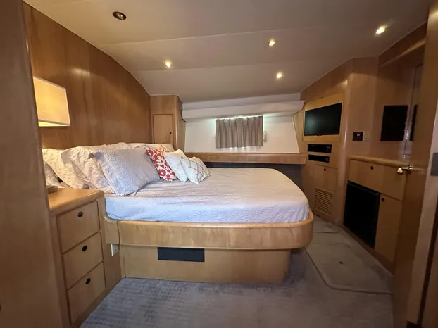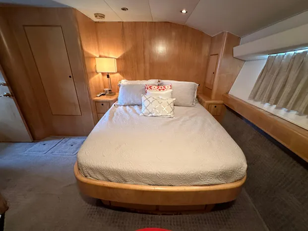 - Located 4 steps down from main salon on starboard side