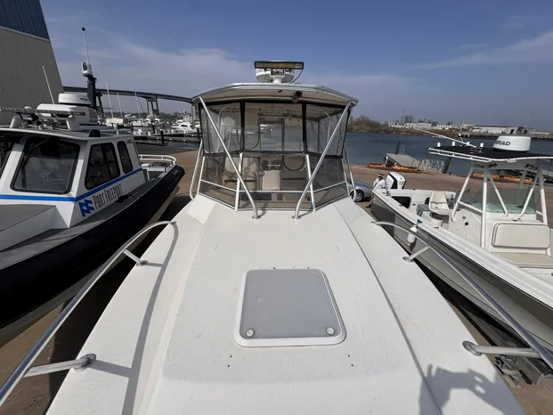 - Aluminum Half-Tower with Hard Top, Forward Facing LED Light Bar, Grab/Hand Rails, Aft/Cockpit LED Spreader Lights & (8) Aft Mounted Rocket Launchers/Rod Holders