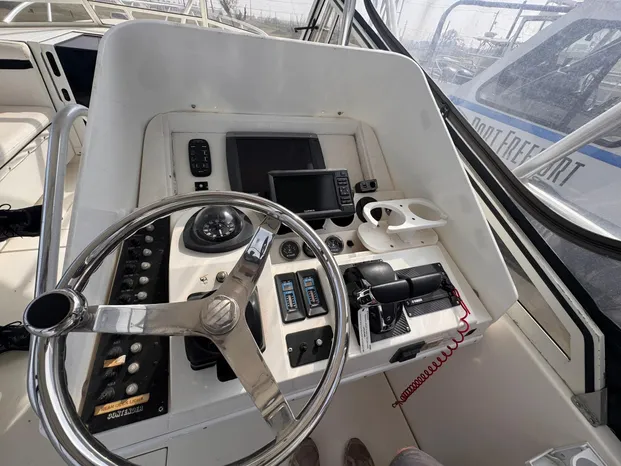 Every Contender has a signature trait. When it comes to the Contender 35' Express, that trait is outstanding fishing ability with a smooth dry ride to match. With its fully integrated transom, 10' beam and 24. 5 degree deadrise hull, you have the makings of a world class offshore performer. Other features include a raised 38 gallon live well, spacious cockpit with lift-out under deck fish box, transom door and a cavernous storage area below the helm and guest seating area. A clean comfortable cabin sleeps four while a full galley and a complete head and shower compliment this well designed boat. Pure performance, outstanding fishing ability, and comfort puts the Contender 35' Express in a class by itself.
