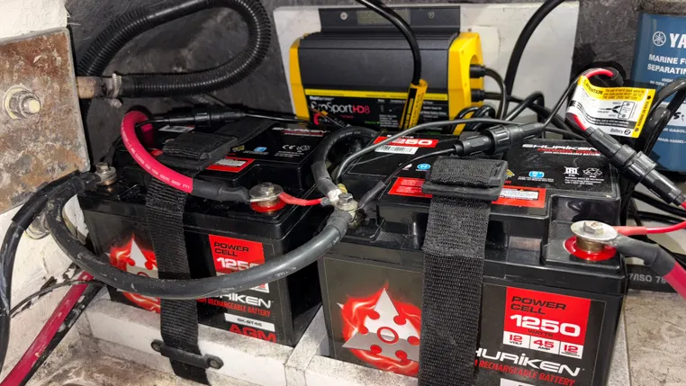 New onboard 2-bank battery charger installed with two new batteries (April, 2025).