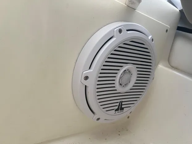 Notable features include a premium Fusion head unit paired with JL Audio speakers for high-quality sound on the water. The boat sits on a single-axle trailer, making transport and storage a breeze. Its lightweight construction, stable hull design, and practical layout make it perfect for cruising, watersports, or serving as a yacht tender.