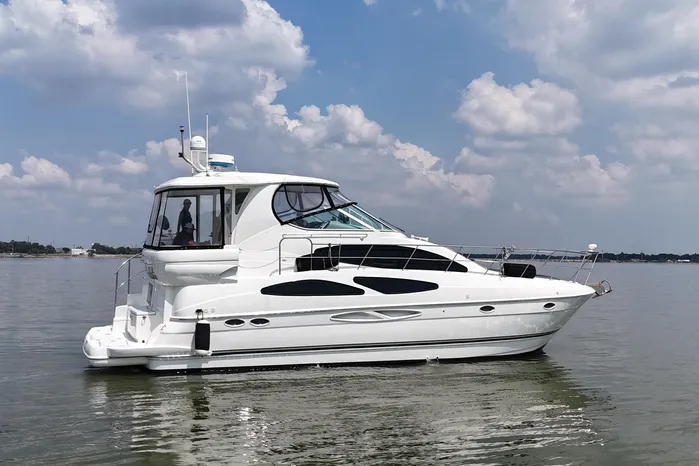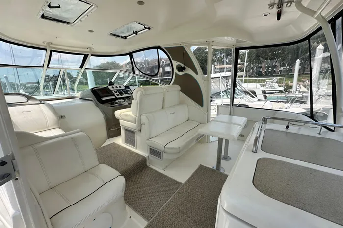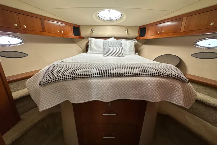 "Knot Available" interior accommodations rival any of her competitors 40' motor yachts, as she lives and feels like a much larger motor yacht. The manufacturer hit a homerun with this unique layout, as they used every square inch of space to accomplish a lot actual living spaces, while allowing plenty of room for everyone to move around without feeling cramped.