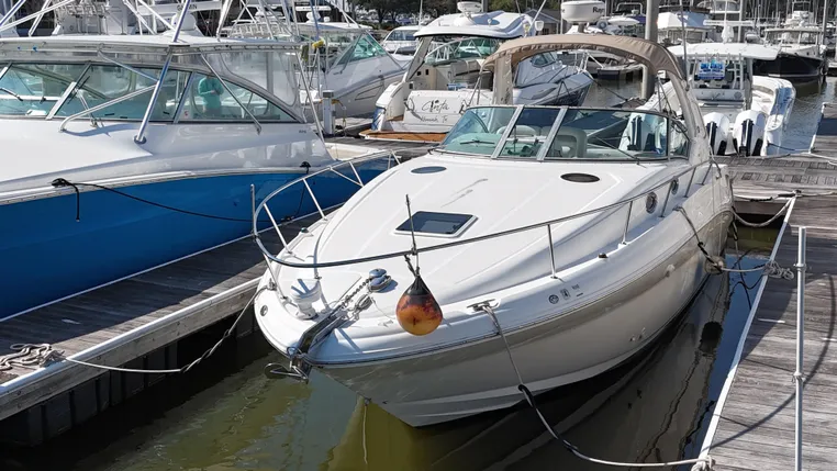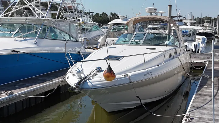 Forward stateroom with privacy curtain, queen berth, hanging locker, mirrored bulkhead & Storage cabinets. Main Salon w/curved convertible settee (sleeps 2) & table to starboard. Galley is to port. Enclosed head compartment to port w/VacuFlush head, shower, mirror, vanity w/sink and storage below, & stainless-steel handrail. Aft cabin w/U-shaped settee that converts to sleeps (2), privacy curtain & a hanging locker.
