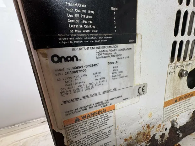 - 9KW Onan Diesel Generator aprox 800Hrs