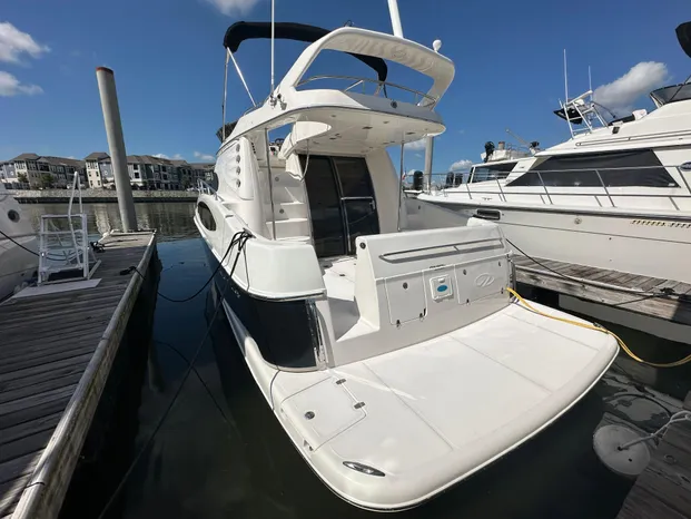 - Large Aft Flybridge Overhang with Large Sun-Pad and Stainless Steel Safety Rails/Drink Holders