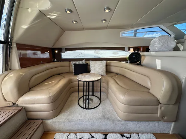 Access to the flybridge is via the molded fiberglass steps from the cockpit. The flybridge features a large L-shaped settee, helm and companion captain chairs, and a huge sun-pad on the aft flybridge overhang deck. There is plenty of space to relax and enjoy the sun with family and friends.