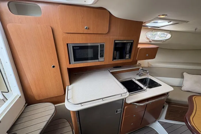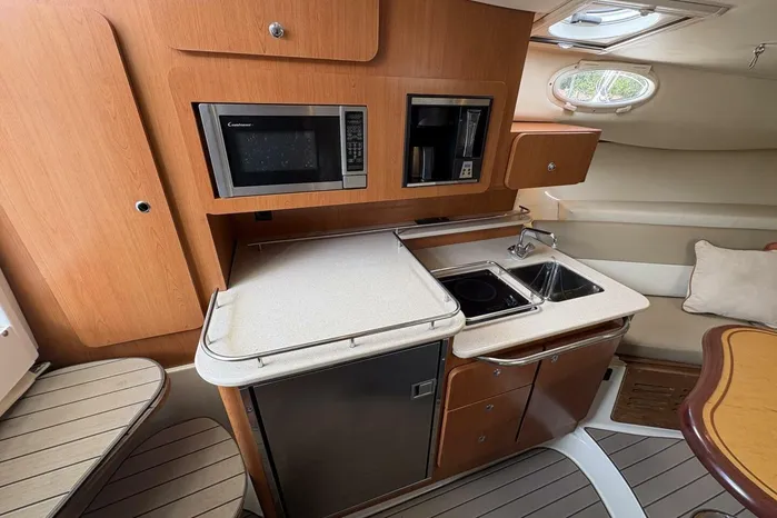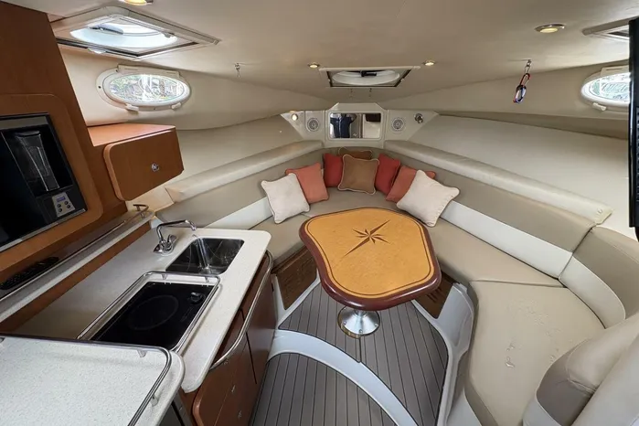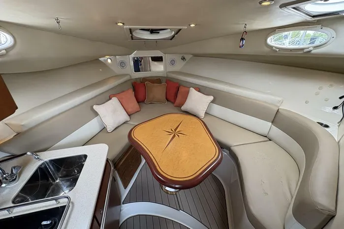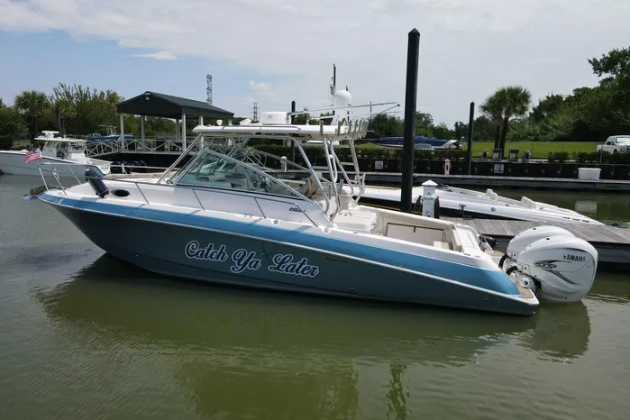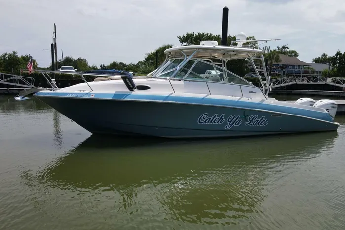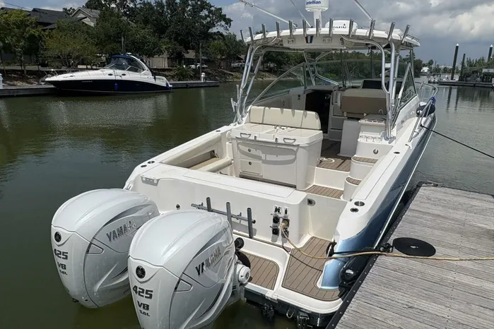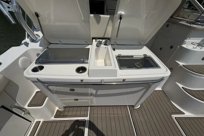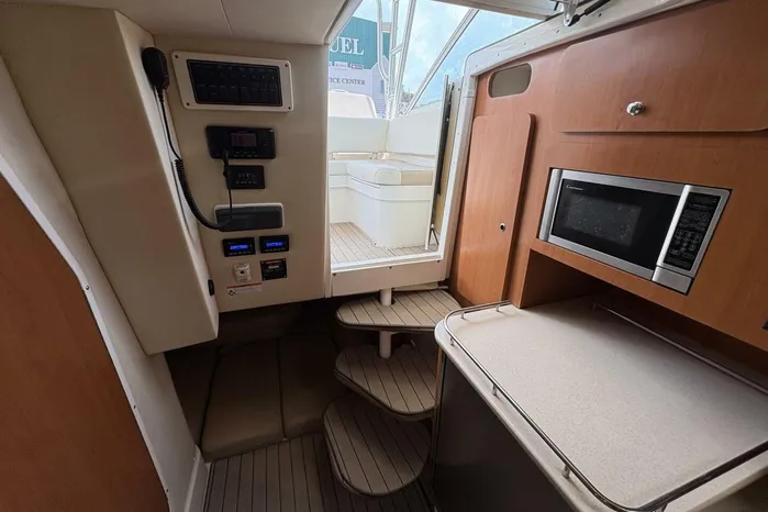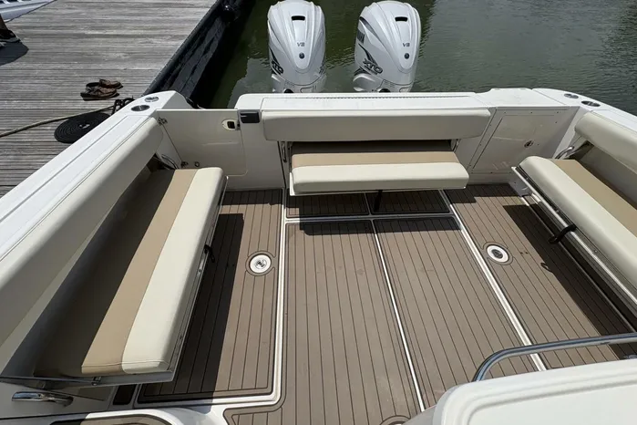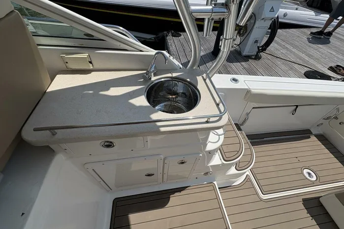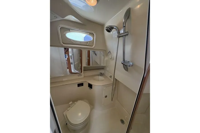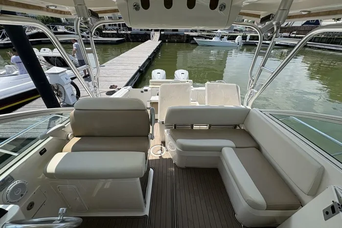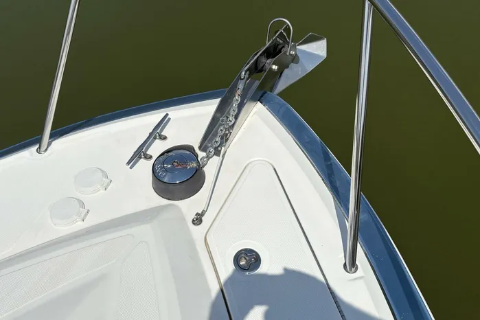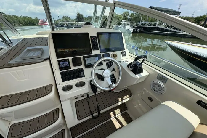 - Large Windshield for Weather Protection with Walkthru to foredeck