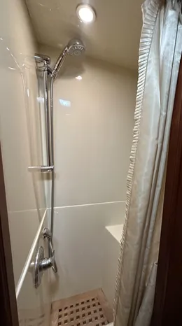 - Shower stall with teak grate