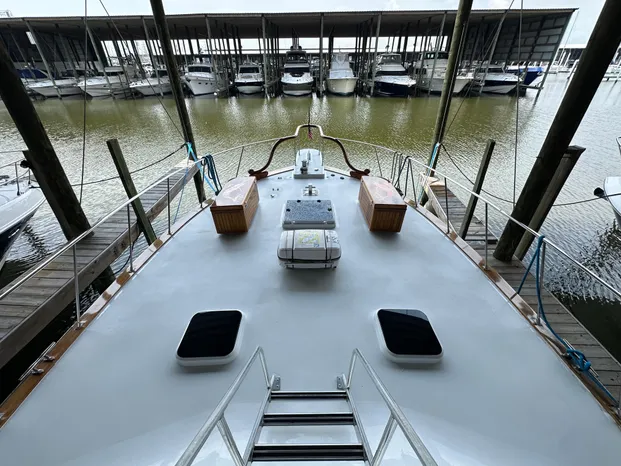 - Custom aluminum ladder/stairs leading from the forward upper helm deck to the bow