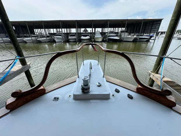 - Custom teak and stainless steel bow rail