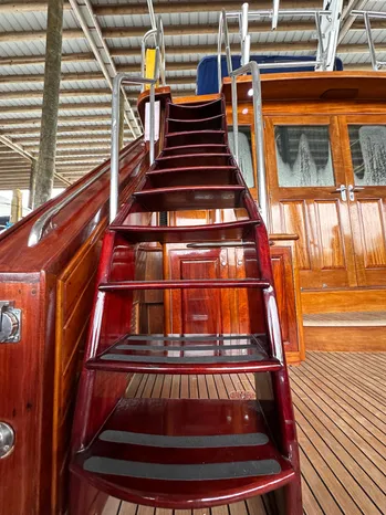 - Custom cockpit/flybridge teak ladder/stairs with aluminum hand rails