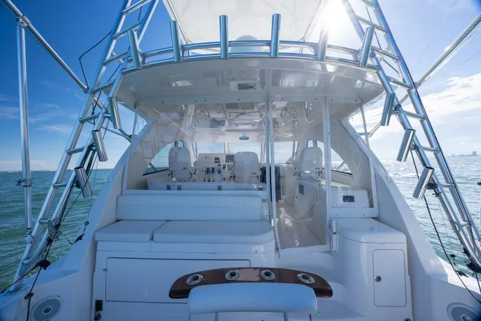 - Fishability - Careful planning and forethought go into the placement of every element in the cockpit - especially essentials such as the bait tank, tackle center and rod storage. Mezzanine seating provides a comfortable perch while watching the spread. Insulated fishboxes are molded into the sole and equipped with in-line macerators. Full-length piano hinges and rubber gaskets allow for a tight seal, to keep your catch fresher longer. Lures and rigging equipment are neatly organized in a custom-designed tackle center at the rigging station.