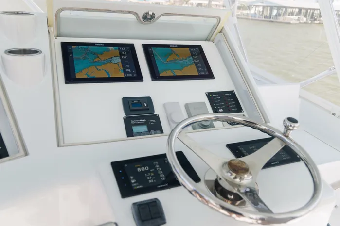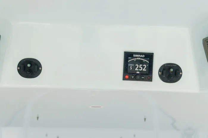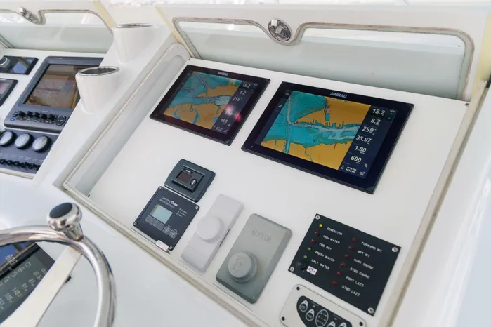 - Electronics in closable cabinets forward of helm and above captain’s seat Start/stop switches under helm pod
