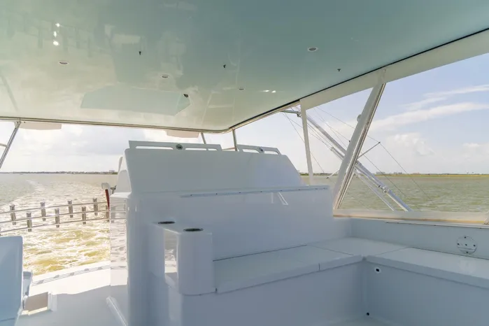 - Custom bench seat on top of hardtop with safety rail and two rod holders