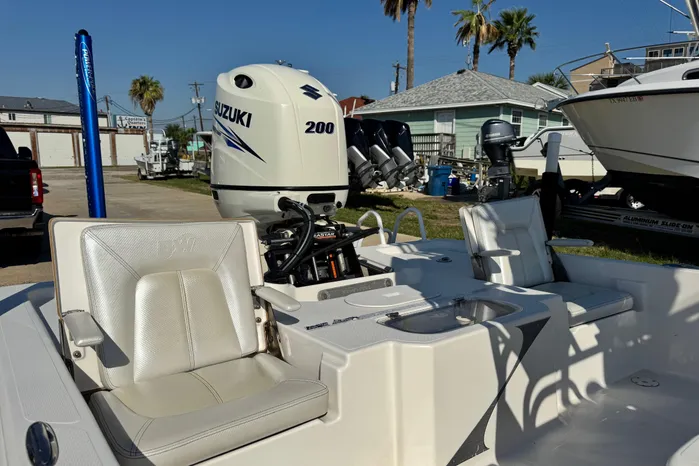 Find schools of fish with her elevated helm deck. Make the perfect cast, off of her tall sight casting platform. Get on plane quickly and run in shallow water using her 4 blade SS prop, jack plate, and tunnel! Enjoy peace of mind with her reliable and efficient Suzuki 200hp that has only 167hrs! This boat checks all of the boxes for the ultimate Blue Wave.