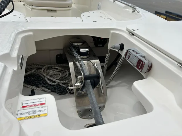 - Insulated bow storage lockers/fishboxes (3) with overboard drains and stainless steel gas shocks