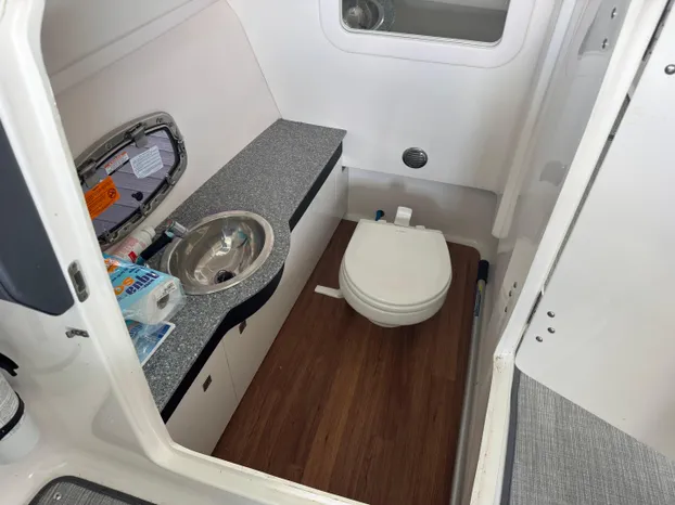 - Storage in Floor with Large Hinged Fiberglass Hatch, Rubber Mat and Drawer Storage