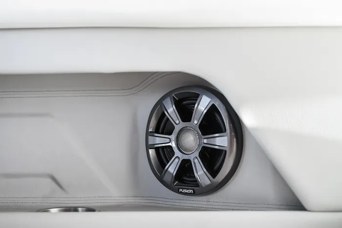 Upgraded Fusion Marine Stereo system integrates seamlessly with smartphones via Bluetooth.