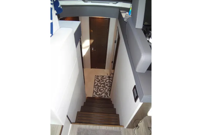 Galley & Salon: Open-concept salon with panorama windows, sunroof / opening top or large windows, retractable or opening window connecting galley to cockpit. Well-equipped galley (sink, cooktop, microwave, dishwasher in many cases).