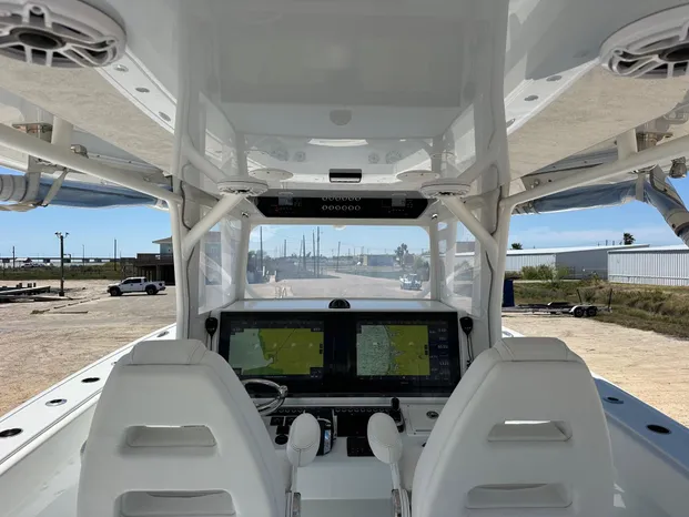 Cockpit Coolers and Tackle Storage on the Aft Side of the Helm Seating