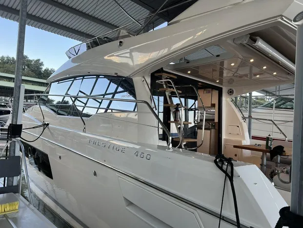 2022 Prestige Yachts 460 Fly, Very clean, freshwater only offered by the original owner! Twin Volvo Penta IPS600 D6 in-line 6 cylinder 5.5L, 440hp with pods. 95 Lake Travis hours. Cummins Onan 13.5Kw diesel generator. Two stateroom with two head unit luxury motor yacht with fly bridge operation and capt. quarters.