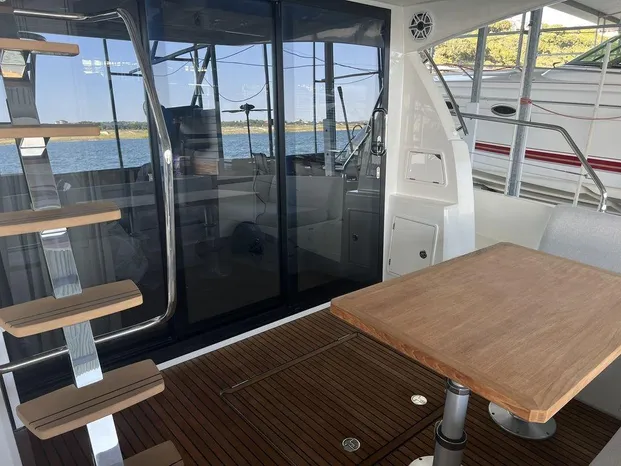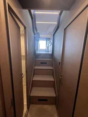 The contemporary layout of the exterior galley located to the aft opens onto an immense swim platform. The very comfortable Flybridge is an invitation to complete relaxation.