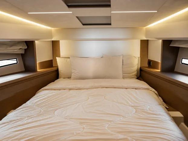 - Storage drawers below berth