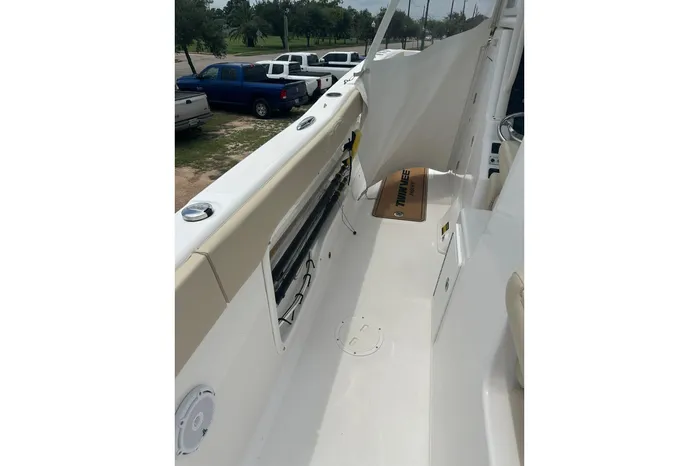 - In the Bow Area There is a Massive Amount of Forward Deck Space with Removable Cushions with Storage Underneath - Windlass with Chain Locker Storage and Bow roller. Large Bow Hatches for Additional Storage