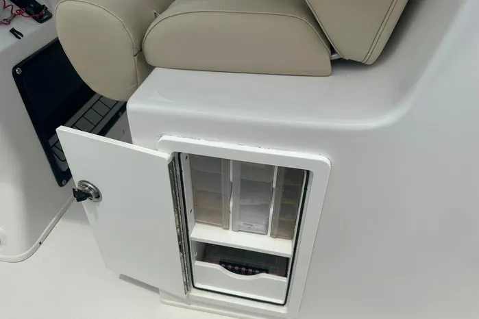 - Walk-in Center Console Offers a Large Storage Area for Bow Cushions and Marine Head, Access to Panels, Fuses and Switches, with a Roll Down Curtain to hide them. Battery switches