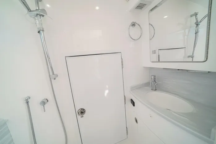 - Head Enclosed w/ Moded in Vanity w/ Sink, Faucet, Shower, and Exhaust Fan