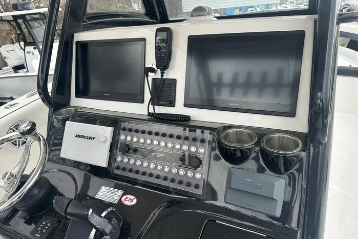 (2) M6 JL 10” SubFusion RA-770 w/ (6) M6 7.7 JL SpeakersJL MVi 800 W 8-Channel DSP AmpBatteries (4) Wired to Console (Included)China Head with Pump Out & Overboard DischargeCompassDual Battery SwitchElectric Bow TableFinished Bilge Liner with Motion LightFresh Water ShowerInsulated Livewells – 30 Gal. & 24 Gal.Lumitec Poco 4 Light Operating SystemMotion Activated Storage LightingRaw Water Wash DownRecessed Windlass Anchor with 300’ of Rode (Free-Fall)SeaKeeper Ride 600mm SystemConsole Sleeper BerthDive Door LadderRecessed Rodracks w/ Toe RailSink w/ Shower Head Inside ConsoleSwim LadderUSB Outlet in BowYacht Style Helm Station