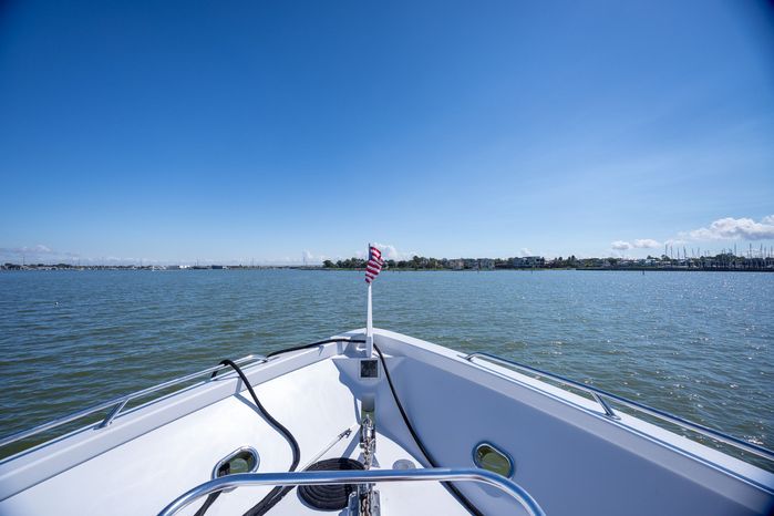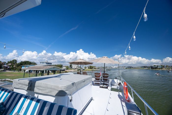 The fully covered aft deck offers a comfortable and spacious place to enjoy “al fresco” dining and/or viewing while cruising.