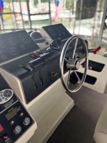 Full-Bodied mini-motoryacht gave 1990s owners good value for the money. Few other 33-footers can match her of interior volume. Highlights include double staterooms for and aft, roomy salon with large windows, well-equipped galley with upright refrigerator, four-placed dinette. Very good engine room access. Twin 300hp gas inboards cruise at 18 knots with a top speed in the mid 20s.