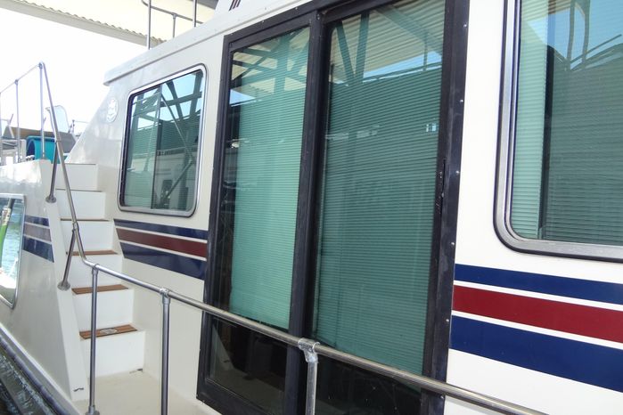 Amenities: Bimini tops over all deck levels, electric windlass, stainless rails, and boarding stairs