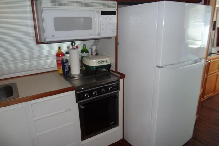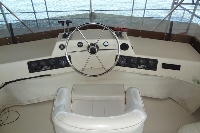 Summary TableFeature CategoryTypical Specifications & Highlights Size & Structure52 ft LOA, fiberglass hull, full-beam (~14 ft), three-deck layout Accommodation2 staterooms (queen master aft, twin guest forward), 2 heads with showers/tub Living AreasSpacious salon, dinette, well-equipped galley with full-size appliances DecksForedeck, sundeck/upper helm, aft deck with swim platform, bimini tops all around Power & PropulsionTwin Crusader 454 V-drives (~350 hp each), fuel ~200 gal, water ~100–120 gal Systems & ComfortAC/heat, hot water, inverter, generator, solar, modern electronics and entertainmentThe details of this vessel in good faith but cannot guarantee or warrant the accuracy of this information nor warrant the condition of the vessel. A buyer should instruct his agents, or his surveyors, to investigate such details as the buyer desires validated. This vessel is offered subject to prior sale, price change, or withdrawal without notice.