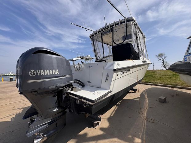 Every Contender has a signature trait. When it comes to the Contender 35' Express, that trait is outstanding fishing ability with a smooth dry ride to match. With its fully integrated transom, 10' beam and 24. 5 degree deadrise hull, you have the makings of a world class offshore performer. Other features include a raised 38 gallon live well, spacious cockpit with lift-out under deck fish box, transom door and a cavernous storage area below the helm and guest seating area. A clean comfortable cabin sleeps four while a full galley and a complete head and shower compliment this well designed boat. Pure performance, outstanding fishing ability, and comfort puts the Contender 35' Express in a class by itself.