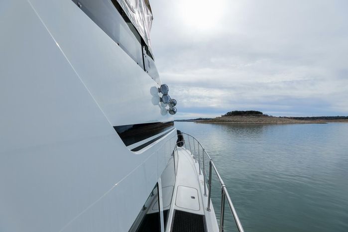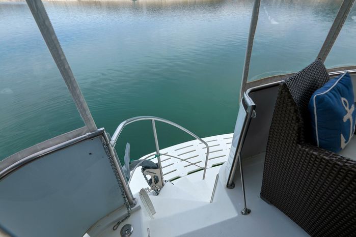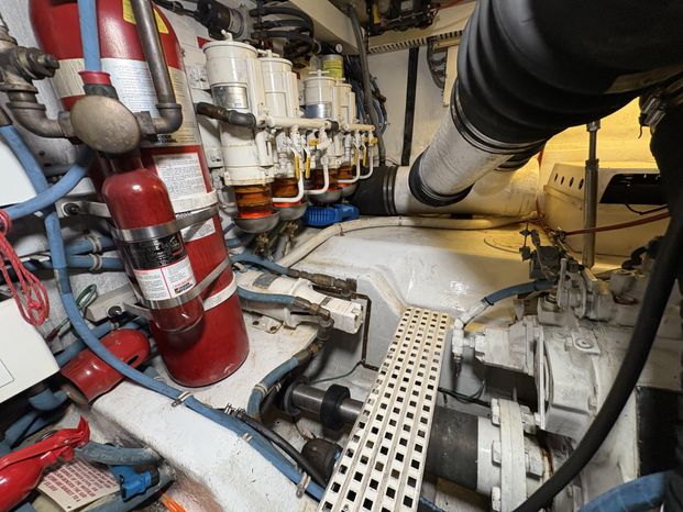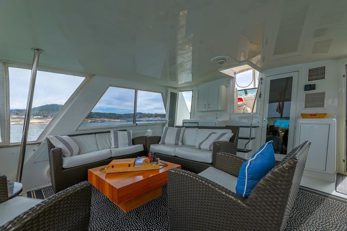 - Yacht- This well-maintained vessel features a spacious flybridge, sundeck and aft deck with ample seating, which offers a superior setting for entertaining. Below the waterline, Interlux 2000E epoxy primer coat applied in July 2020 and is in good condition. Above the waterline, the topcoat (Dupont Imron) is in superior condition, with no fading or chalking like gelcoat is prone to do with age.