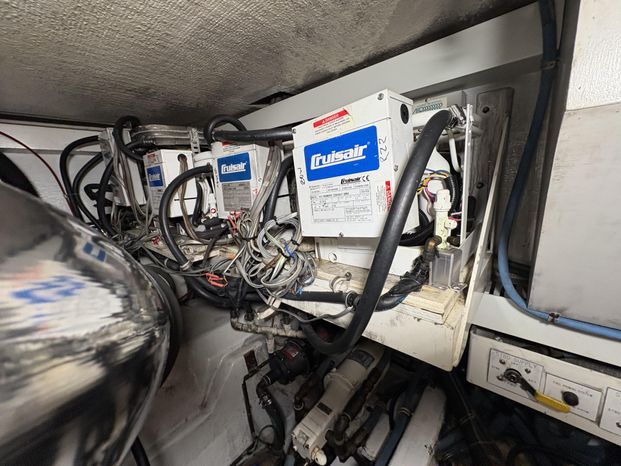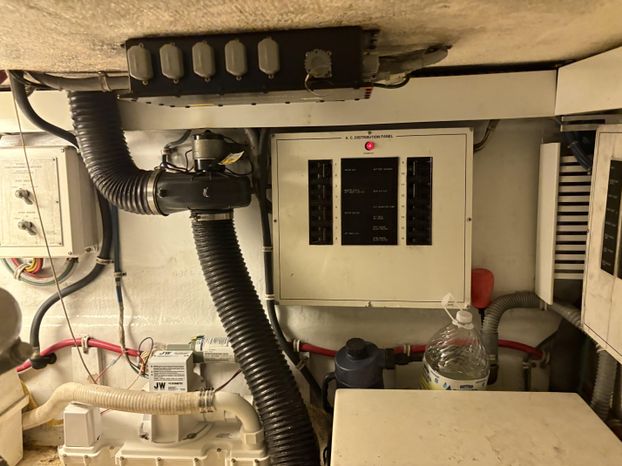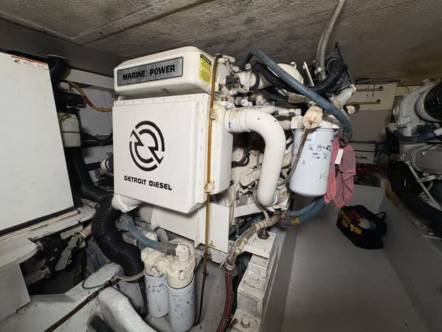 - Mechanical/Electrical- Solid performance powered by twin Detroit Diesel engines, with low hours. Whether you’re cruising or enjoying a weekend getaway, this Hatteras is designed for both comfort and style with ample service provided by an Onan 20Kw Generator which allows for boating in comfort away from the dock. Don’t miss the opportunity to own a piece of maritime excellence. All engine maintenance records dating from 1999 to present are available on board for review. Manuals available for all systems.
