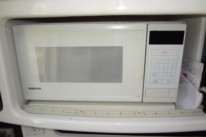 Full galley with sink, microwave, cooktop, and refrigerator