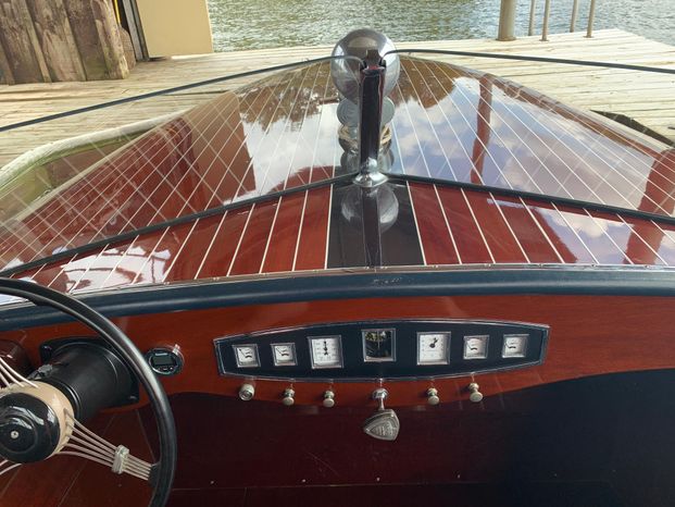 We build entirely in the WEST (Wood Epoxy Saturation Technique) method for logevity and low upkeep. Framework and outer planking are of the finest pattern grade Honduras mahogany. Inner planking is African (Okoume) mahogany imported from France. Construction time averages twelve months for runabouts and 1 1/2 to 2 years for larger boats. All painted surfaces are sheathed with Dynel cloth, which is 6 times more abrasive-resistent than fiberglass.