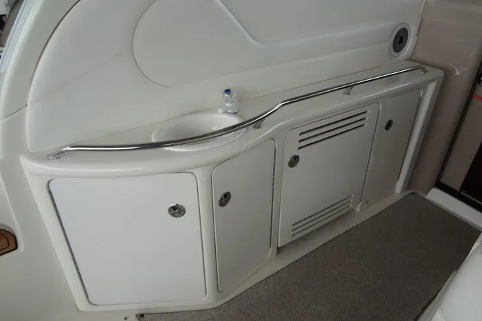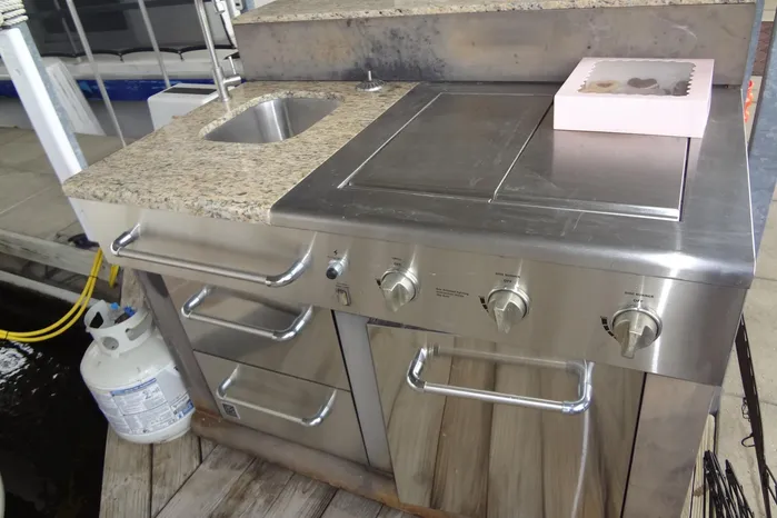 Galley with microwave, refrigerator/freezer, two-burner stove, coffee maker