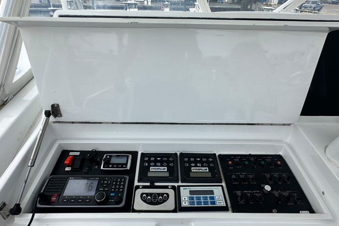 The cockpit and flybridge are both very spacious and the flybridge was recently air-conditioned for maximum comfort.