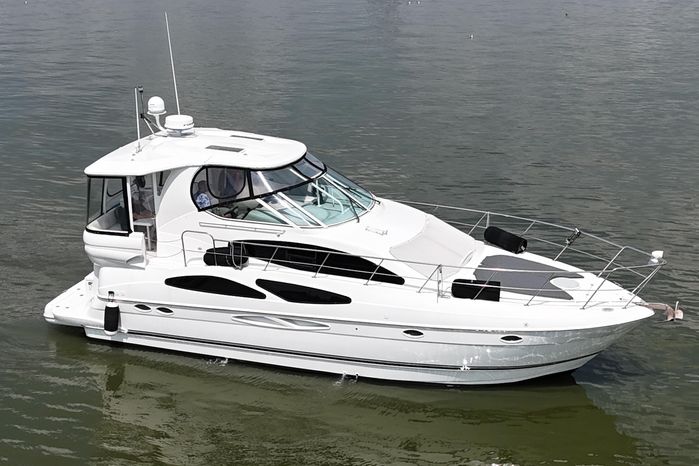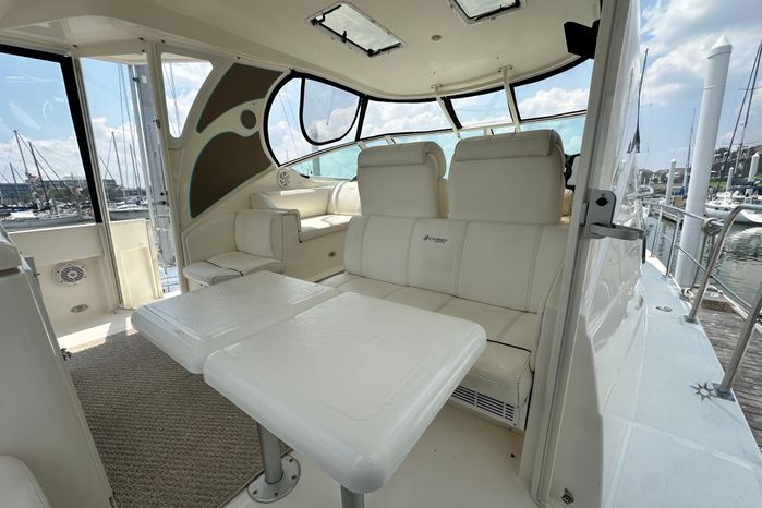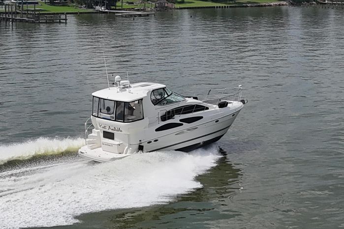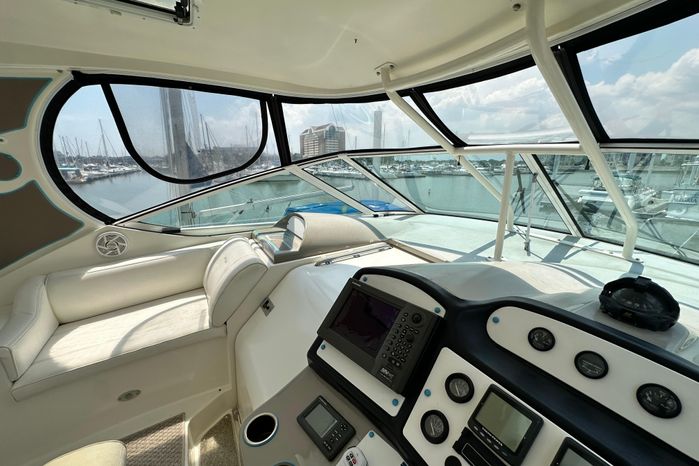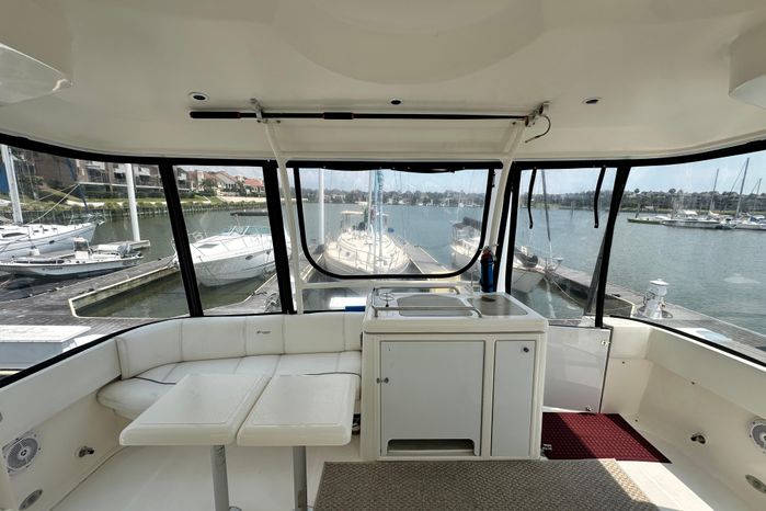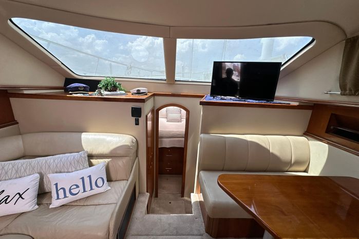 "Knot Available" interior accommodations rival any of her competitors 40' motor yachts, as she lives and feels like a much larger motor yacht. The manufacturer hit a homerun with this unique layout, as they used every square inch of space to accomplish a lot actual living spaces, while allowing plenty of room for everyone to move around without feeling cramped.