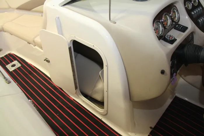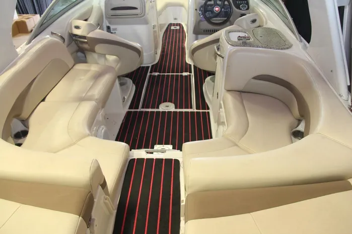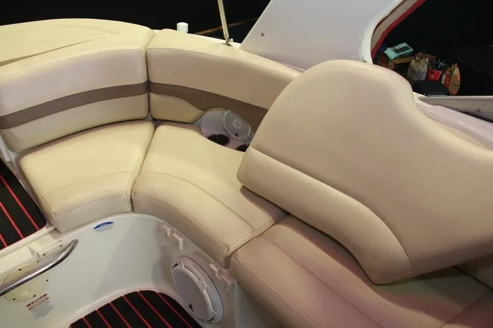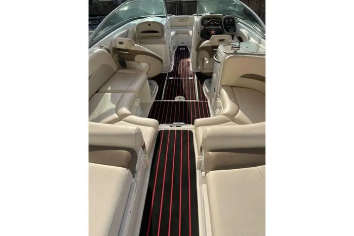 Whether you’re entertaining guests, enjoying water sports, or simply cruising in style, the Chaparral 256 SSi stands out as a symbol of quality, reliability, and timeless elegance. The deck, finished in bold black and red sea deck, adds a contemporary touch to this classic runabout, making every journey as comfortable as it is memorable.